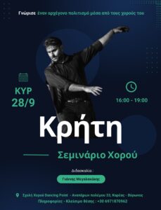 Στον Βύρωνα – Σεμινάριο Κρητικών Χορών! Απευθύνεται σε όλα τα χορευτικά επίπεδα. Διδασκαλία χορών από…Continue reading→