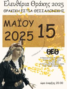 Πέμπτη 15/05 από την Θρακική Εστία Θεσσαλονίκης στην πλατεία Ναυαρίνου, ώρα 20.30