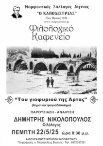 “Του γιοφυριού της Άρτας” (Δημοτικό τραγούδι/ποίημα) – Αίγινα