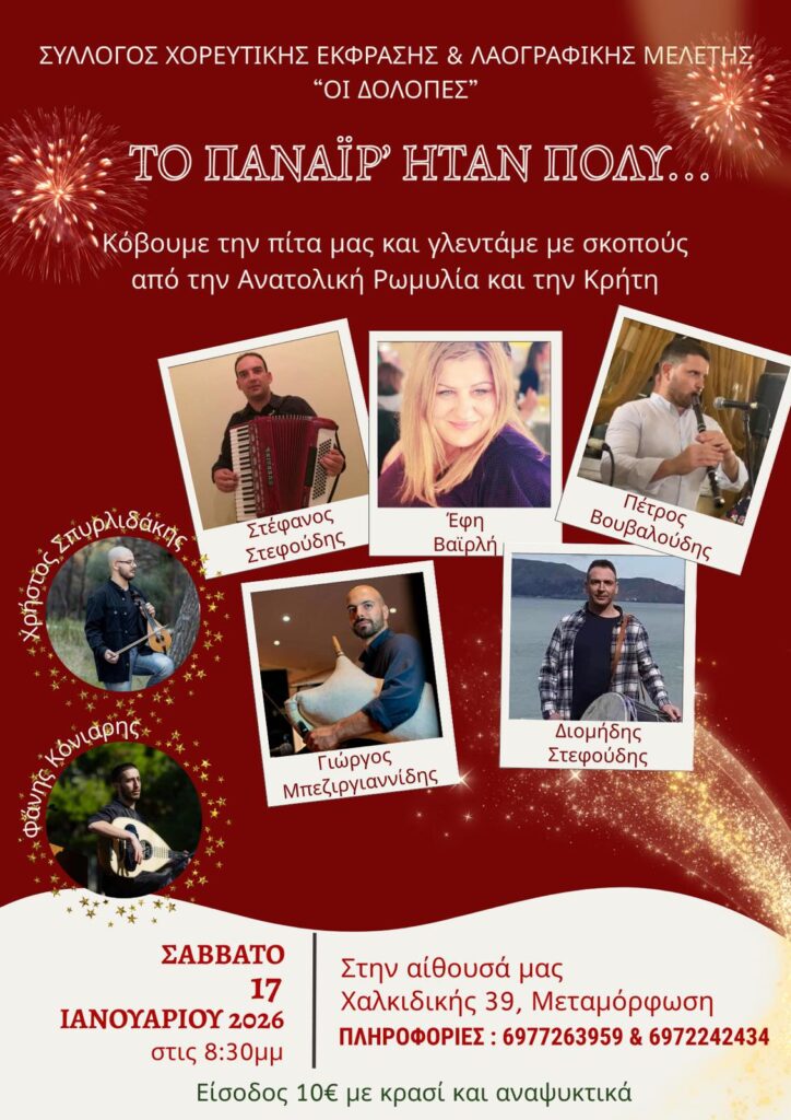 Το Σάββατο 17 Ιανουαρίου ΟΙ ΔΟΛΟΠΕΣ κόβουν την πρωτοχρονιάτικη πίτα τους και